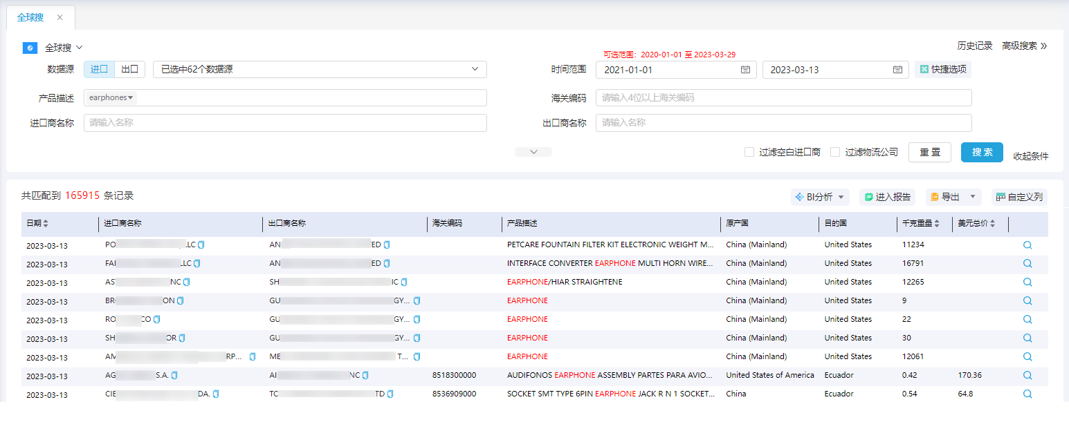3. 结合该核心产品的特点从royal皇家88(集团) 外贸通中,找出采购earphones的买家及其交易记录,顺利获得分析采购动态、交易趋势、供应链,竞品特点等等,有针对性的去挖优质潜客 。