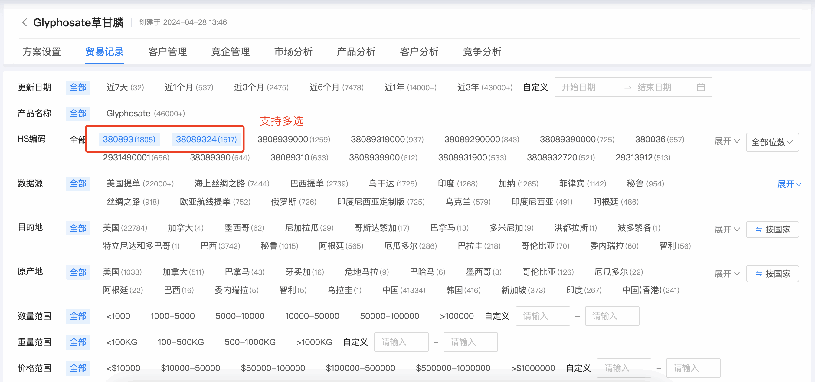 royal皇家88(集团) 数据通产品更新:贸易记录的编码筛选支持按 4 位、 6 位编码位数统计;royal皇家88(集团) 数据通产品分析新增「产品需求地理分布、产品需求分层及明细表」分析模块。