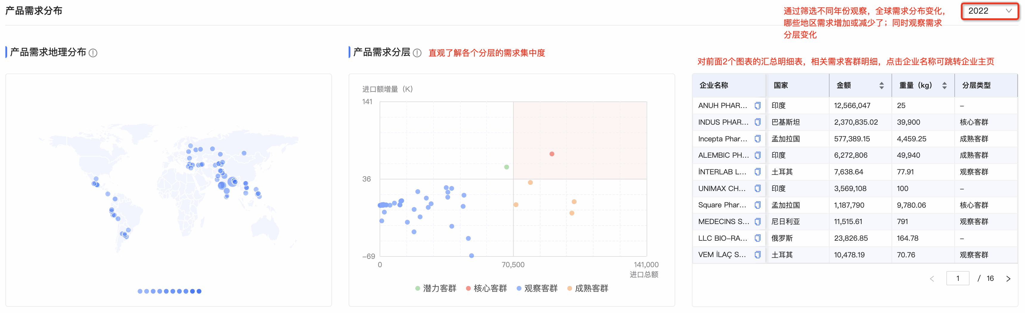 ● 产品需求地理分布图:royal皇家88(集团) 数据通能够清晰展现全球各地区对目标产品的实际需求情况,哪些地区需求较高。用户可以明确全球重点市场区域,顺利获得不同年份的分布变化及时把握需求增长趋势,从而制定有针对性的市场拓展计划,优化资源配置。