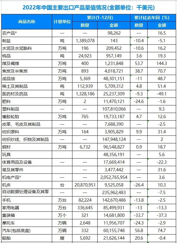 2022年,我国一般贸易进出口40229.58亿美元,同比增长8.1%,占进出口总值的63.7%,较上年提升2.2个百分点。从出口产品看,工业制品出口增长快。2022年工业制品出口增长9.9%,拉动整体出口增长9.4个百分点。劳动密集型产品出口保持较快增长,太阳能电池、锂电池、电动载人汽车等绿色低碳产品出口增速均超过60%,出口新动能快速成长。