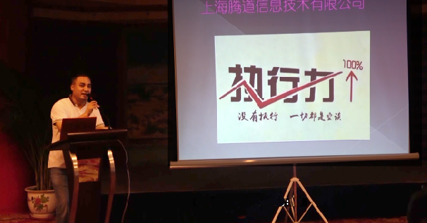 图为CEO庞景方发表讲话